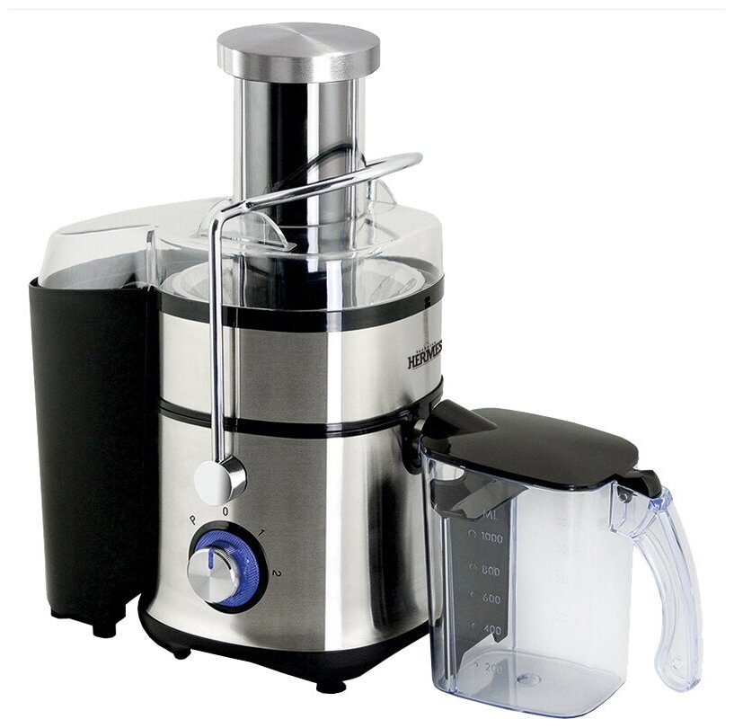 Type: centrifugal, power: 800 W, mouth width: 75 mm, juice tank volume: 1 l, pulp tank volume: 2 l, number of speeds: 2, case material: stainless steel, features: automatic meat ejection
