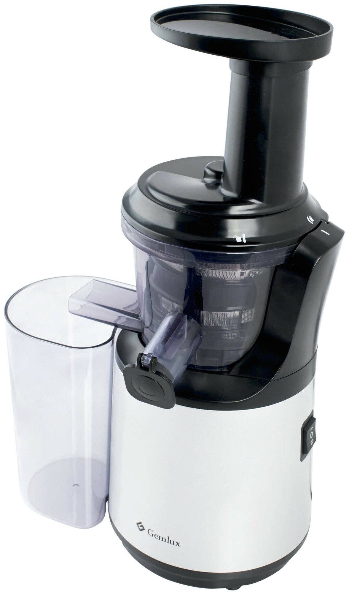 Number of screws: 1; juice tank: glass; maximum rotation speed: 70 rpm; loading tray