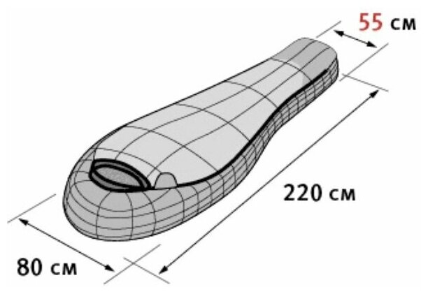 Three-season sleeping bag-cocoon, filling: synthetics 2-layer, comfort temperature: -3°С, possibility of fastening, pockets, compression bag, weight 1.9 kg