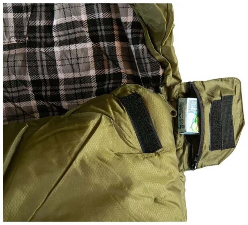 Three-season sleeping bag-blanket, filler: synthetics 2-layer, comfort temperature: -5°C, can be zipped, pockets, compression bag, weight 2.2 kg