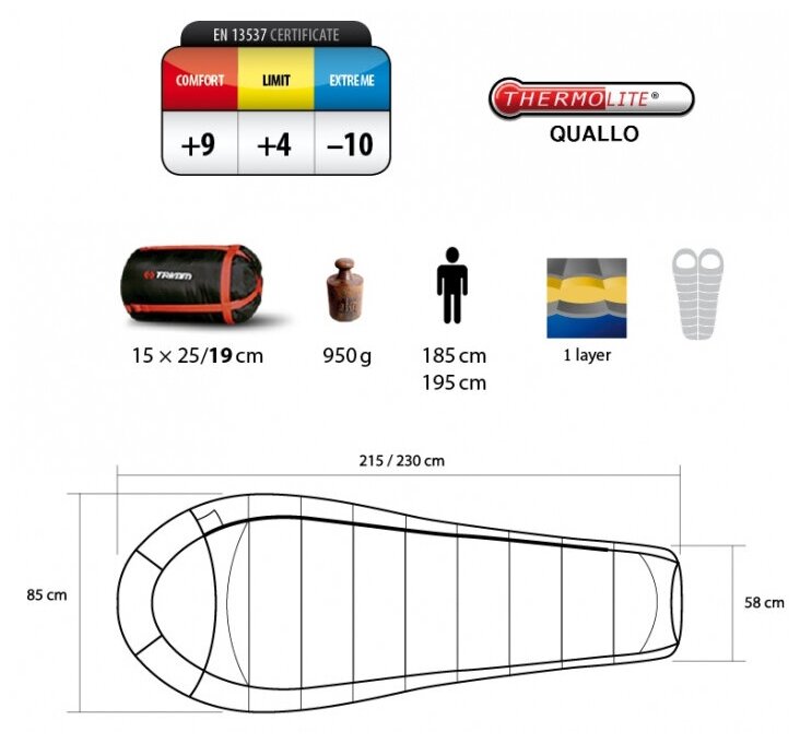 Camping sleeping bag-cocoon, filling: 1-layer synthetics, comfort temperature: 4°C, can be zipped, compression bag, weight 0.95 kg