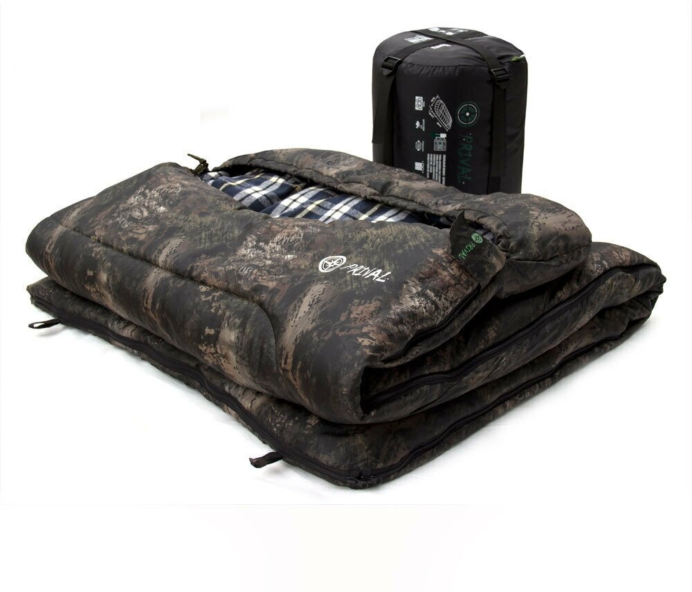 Three-season sleeping bag-blanket, filler: synthetics 2-layer, comfort temperature: -8°C, can be zipped, pockets, compression bag, weight 2.4 kg