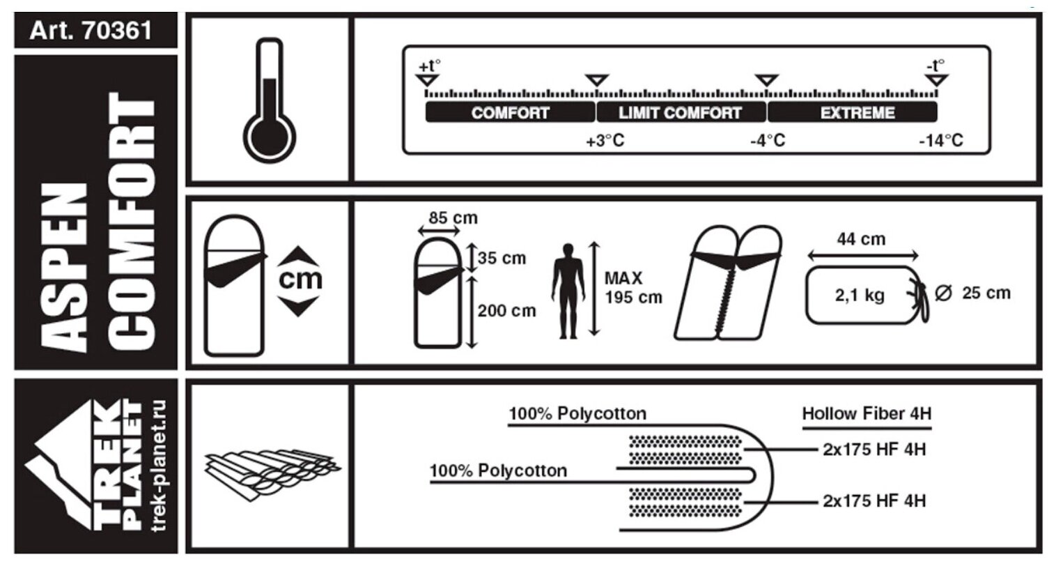 Three-season sleeping bag-blanket, filling: synthetics 2-layer, comfort temperature: -4°C, can be zipped, pockets, weight 2.1 kg