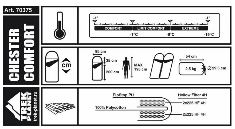 Three-season sleeping bag-blanket, filling: synthetics 2-layer, comfort temperature: -8°C, can be zipped, pockets, compression bag, weight 2.5 kg