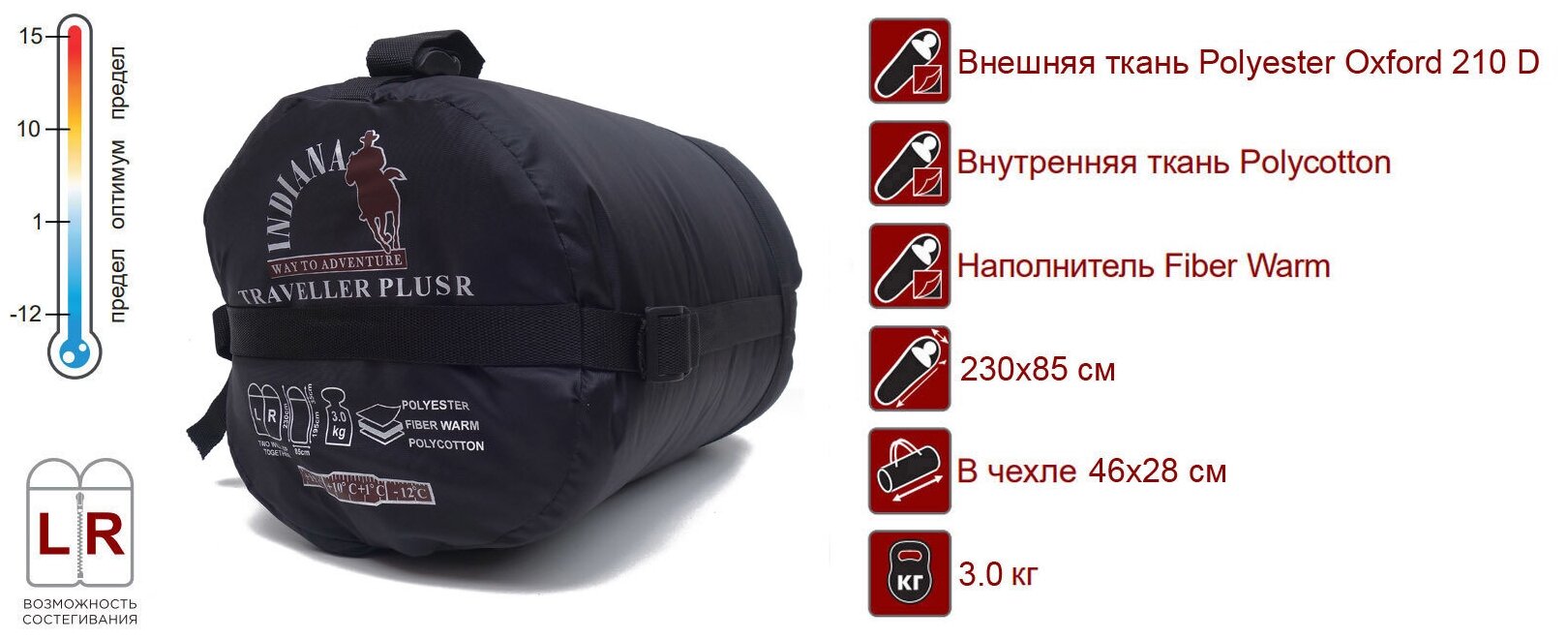 Three-season sleeping bag-blanket, comfort temperature: -12°C, can be zipped, compression bag, weight 3.08 kg