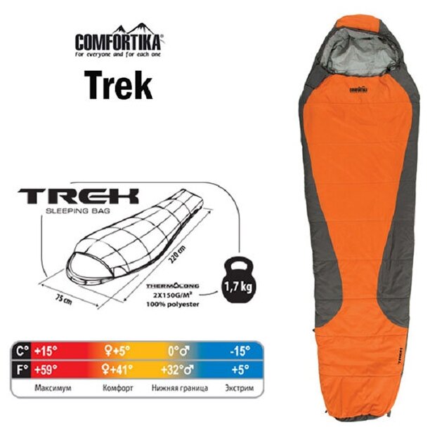 Camping sleeping bag-cocoon, filling: 2-layer synthetics, comfort temperature: 5°C, can be zipped, weight 1.7 kg