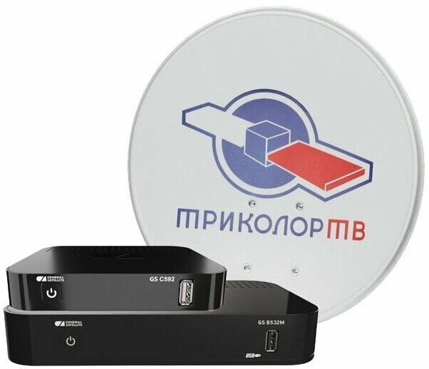 Converter, satellite dish, satellite receiver, operator Tricolor TV Siberia, Full HD, dish diameter 55 cm, DVB-S, DVB-S2, H.265 HEVC, MPEG4, USB, HDMI, not applicable, Timeshift