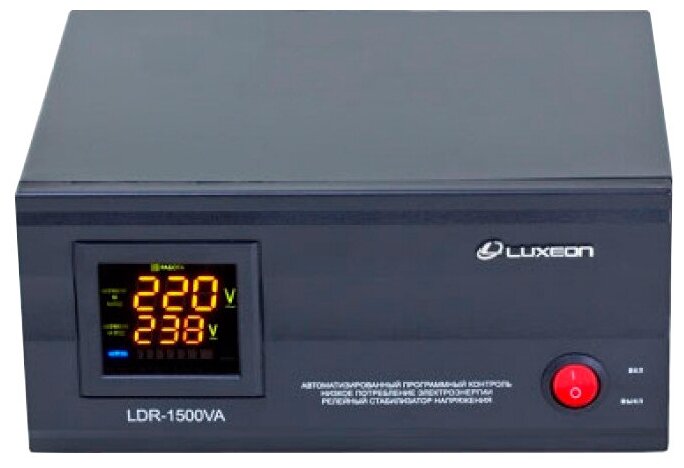 Input voltage type: single-phase, stabilizer type: relay, location: floor, min. input operating voltage: 180 V, max. input operating voltage: 264 V, output sockets with stabilization: 3 pcs., error