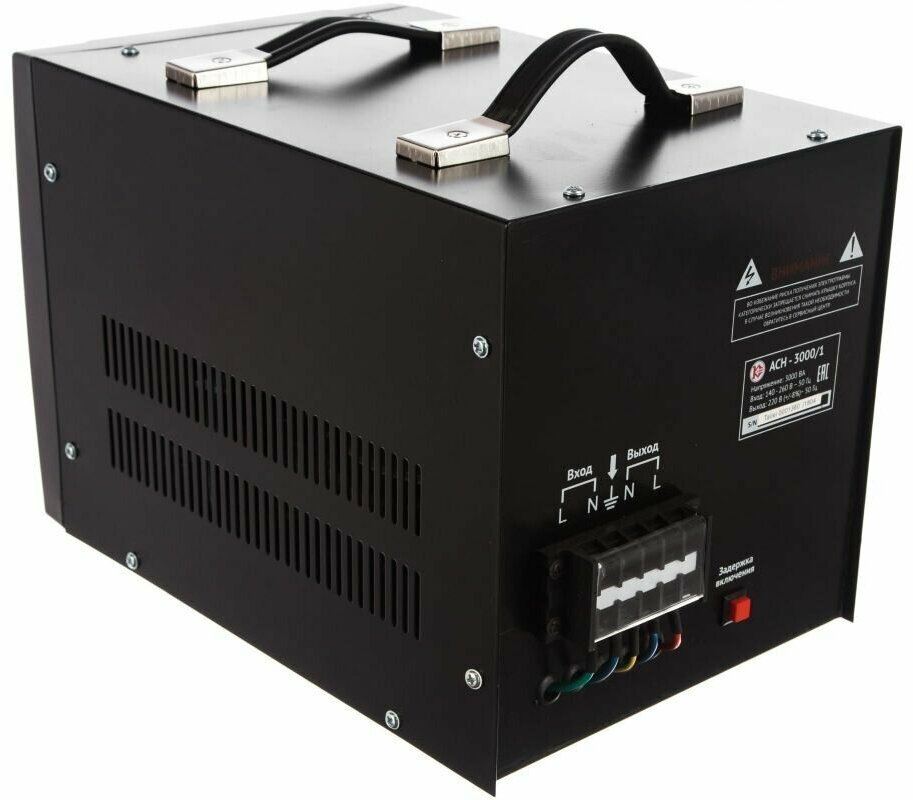 Input voltage type: single-phase, stabilizer type: relay, location: floor, min. input operating voltage: 160 V, max. input operating voltage: 265 V, error: 8%