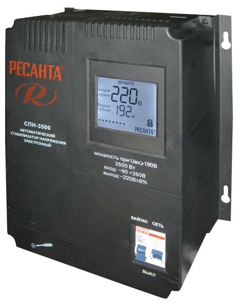 Input voltage type: single-phase, stabilizer type: relay, location: wall-mounted, min. input operating voltage: 90 V, max. input operating voltage: 260 V, error: 8%