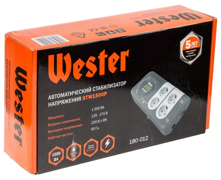 Input voltage type: single-phase, stabilizer type: relay, location: floor, min. input operating voltage: 180 V, max. input operating voltage: 264 V, output sockets with stabilization: 3 pcs., error