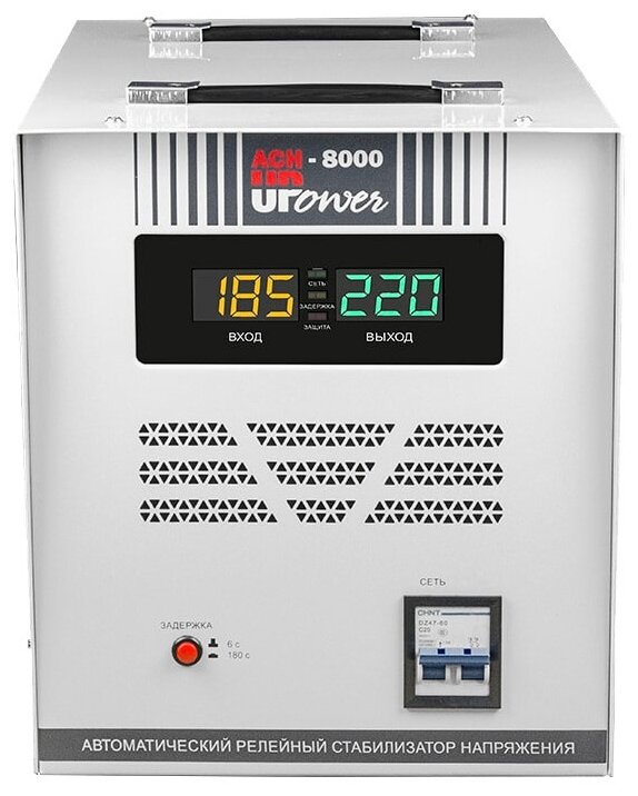 Input voltage type: single-phase, stabilizer type: relay, location: floor, min. input operating voltage: 140 V, max. input operating voltage: 260 V, error: 8%