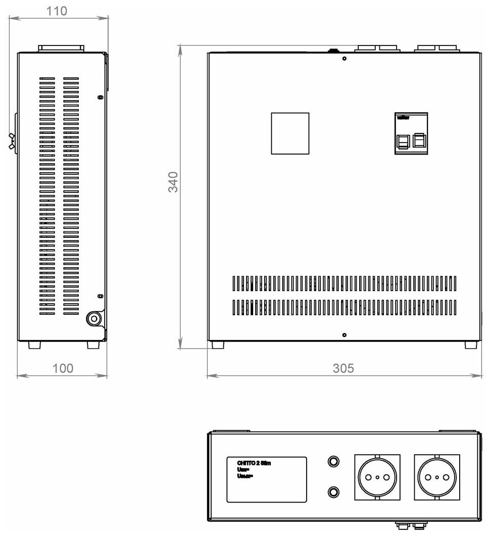 Type of input voltage: single-phase, type of stabilizer: electronic triac, location: floor, wall, min. input operating voltage: 125 V, error: 5%, noise level: 20 dB