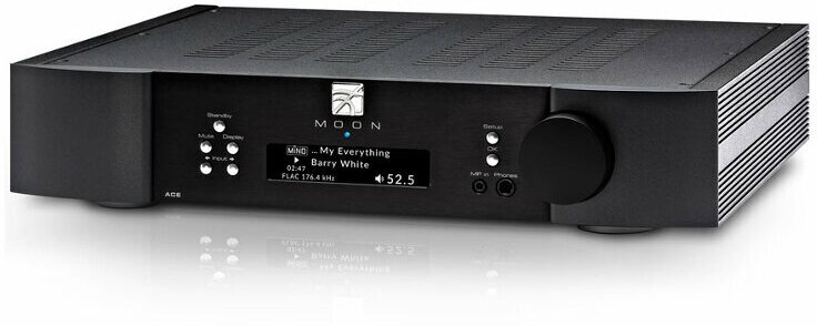 Toroidal transformer, external Wi-Fi antenna, DSD64-256 format, SimLink in/out, MM phono input, IR input