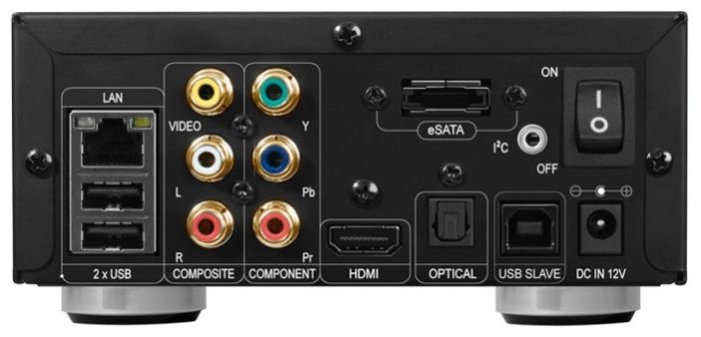 Device type: set-top box, maximum resolution: 1080p, internal memory: less than 4 GB, interfaces: Ethernet 10/100, USB 2.0 Type-A x 3, USB 2.0 Type-B, eSATA Host, HDMI output, optical audio output, stereo audio output, composite video output,