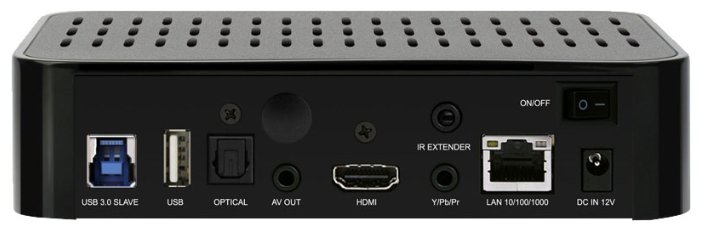 Device type: media player, maximum resolution: 1080p, interfaces: Ethernet 10/100, USB 2.0 Type-A x 2, USB 2.0 Type-B, HDMI output, coaxial audio output, optical audio output, stereo audio output, composite video output, video output com