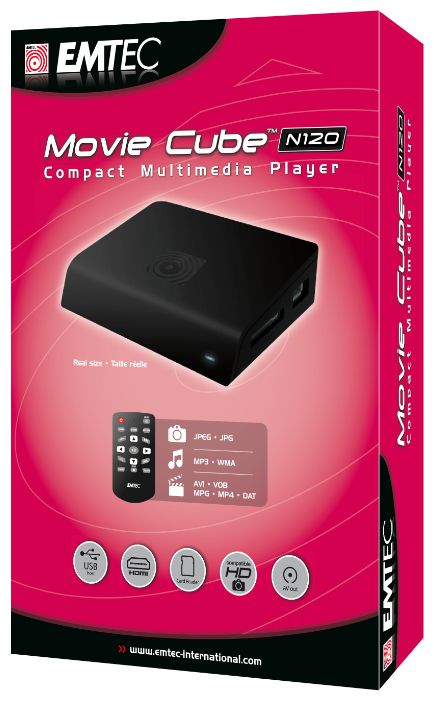 Device type: media player, maximum resolution: 1080i, interfaces: USB 2.0 Type-A, HDMI output, stereo audio output, composite video output, functions and options: remote control