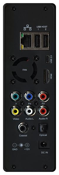 Ethernet 10/100, USB 2.0 Type-A x 2, USB 2.0 Type-B, HDMI output, coaxial audio output, optical audio output, stereo audio output, composite video output, component video output