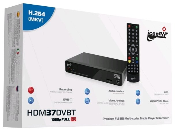 Device type: set-top box, maximum resolution: 1080p, interfaces: USB 2.0 Type-A, USB 2.0 Type-B, HDMI output, SCART output, optical audio output, stereo audio output, composite video output, component video output, functions and options:
