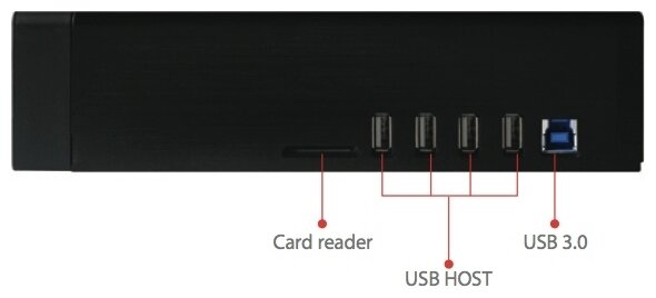 Device type: media player, maximum resolution: 1080p, interfaces: Ethernet 10/100/1000, USB 2.0 Type-A x 4, USB 3.0 Type-B, HDMI output, optical audio output, stereo audio output, composite video output, functions and options: DLNA, NAS server, display, m