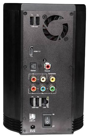 Device type: media player, maximum resolution: 1080p, interfaces: Ethernet 10/100, USB 2.0 Type-A x 2, USB 2.0 Type-B, HDMI output, coaxial audio output, optical audio output, stereo audio output, composite video output, video output com