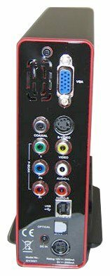USB 2.0 Type-B, S-Video out, VGA out, Coaxial audio out, Optical audio out, Stereo audio out, Composite video out, Component video out