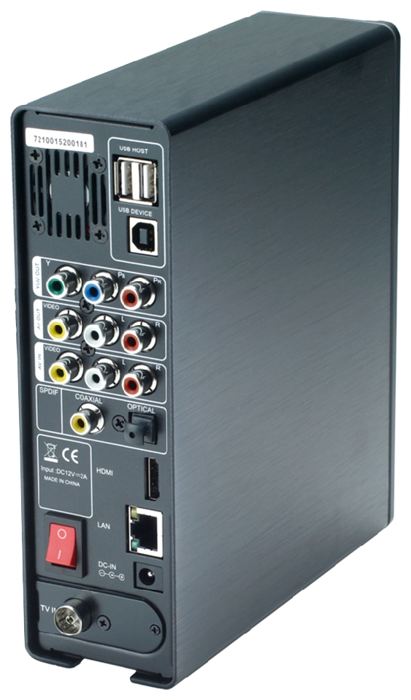 Device type: set-top box, maximum resolution: 1080i, interfaces: Ethernet 10/100, USB 2.0 Type-A x 2, USB 2.0 Type-B, stereo audio input, composite video input, HDMI output, coaxial audio output, audio output optical, audio stereo output
