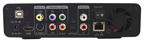 Ethernet 10/100, USB 2.0 Type-A x 2, USB 2.0 Type-B, HDMI output, S-Video output, Coaxial audio output, Optical audio output, Stereo audio output, Composite video output, Component video output