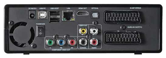Ethernet 10/100, USB 2.0 Type-A x 2, USB 2.0 Type-B, HDMI output, SCART output, coaxial audio output, optical audio output, stereo audio output, component video output