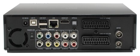 Device type: set-top box, maximum resolution: 1080p, interfaces: Ethernet 10/100, USB 2.0 Type-A x 2, USB 2.0 Type-B, stereo audio input, composite video input, HDMI output, coaxial audio output, audio output optical, audio stereo output