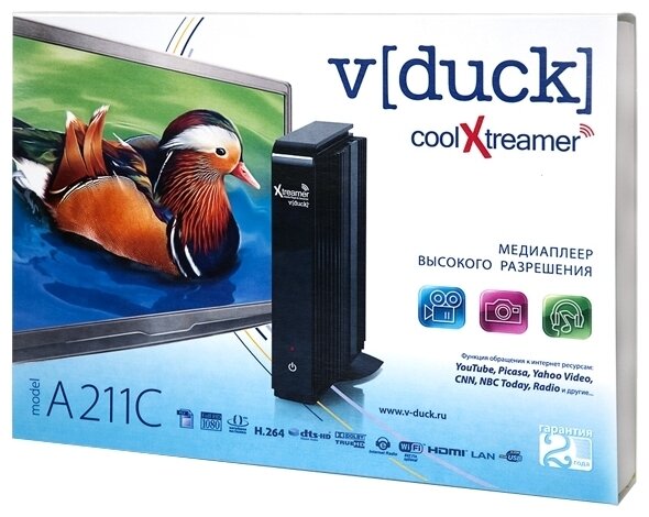 Device type: media player, maximum resolution: 1080p, interfaces: Ethernet 10/100, USB 2.0 Type-A x 2, USB 2.0 Type-B, HDMI output, coaxial audio output, optical audio output, stereo audio output, composite video output, video output com