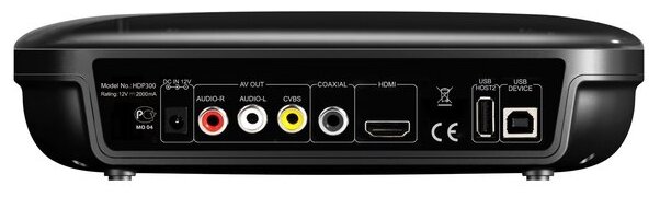 Device type: media player, maximum resolution: 1080p, interfaces: USB 2.0 Type-A x 2, USB 2.0 Type-B, HDMI output, coaxial audio output, stereo audio output, composite video output, functions and options: remote control