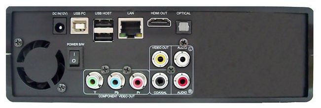 Ethernet 10/100, USB 2.0 Type-A x 2, USB 2.0 Type-B, HDMI output, coaxial audio output, optical audio output, stereo audio output, composite video output, component video output