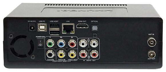 Device type: set-top box, maximum resolution: 1080p, interfaces: Ethernet 10/100, USB 2.0 Type-A x 2, USB 2.0 Type-B, stereo audio input, composite video input, HDMI output, coaxial audio output, audio output optical, audio stereo output