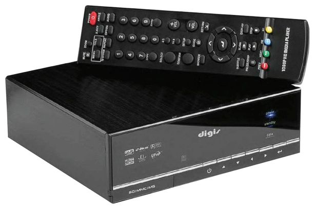Device type: media player, maximum resolution: 1080p, interfaces: Ethernet 10/100, USB 2.0 Type-A x 2, USB 2.0 Type-B, HDMI output, coaxial audio output, optical audio output, stereo audio output, composite video output, video output com