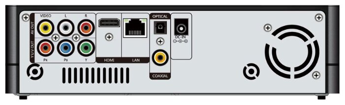 Ethernet 10/100/1000, USB 2.0 Type-A x 2, USB 3.0 Type-B, HDMI output, coaxial audio output, optical audio output, stereo audio output, composite video output, component video output