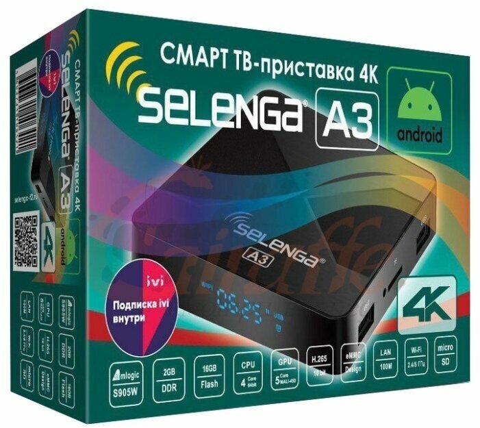 Device type: set-top box, operating system: Android, Android TV, maximum resolution: 4K UHD, built-in memory: 16 GB, interfaces: Ethernet 10/100, USB 2.0 Type-A x 2, HDMI output, stereo audio output, output video composite, HDMI, RCA, wireless