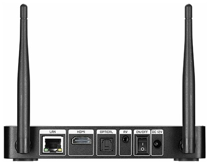 Quad-core Cortex-A9r4 2.0GHz processor, external dual-band Wi-Fi antenna, aluminum case; IR remote control, HDMI cable, SATA cable, AV cable, microUSB cable, power adapter, warranty card, manual