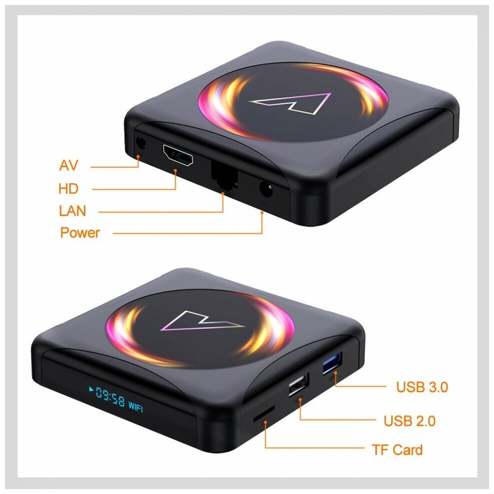 Device type: media player, maximum resolution: 1080p, interfaces: Ethernet 10/100, USB 2.0 Type-A x 2, USB 2.0 Type-B, HDMI output, coaxial audio output, optical audio output, stereo audio output, composite video output, video output com