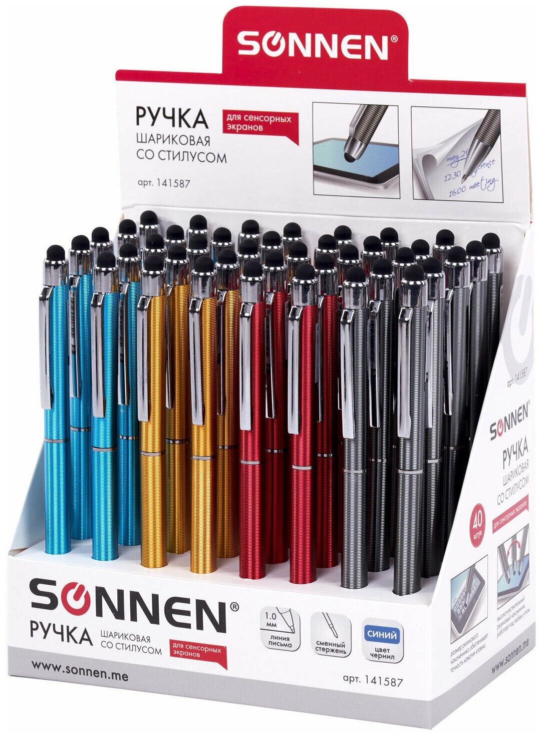 SONNEN Stylus Pen for Smartphones/Tablets, BLUE, Assorted Body, Silver Details, 1mm Writing Line, 141587