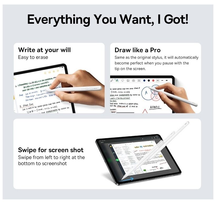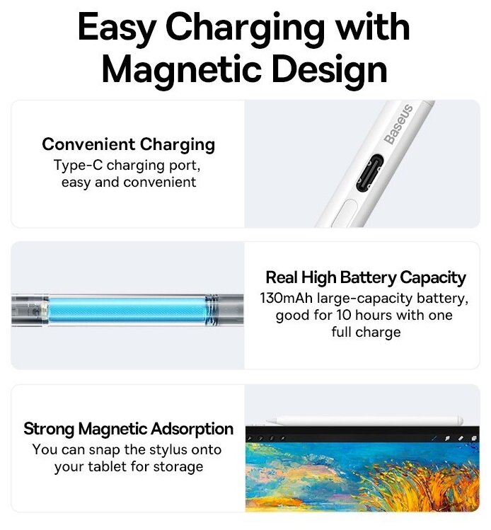 BASEUS Smooth Writing Active Stylus with Palm Resistant LED Indicators, White