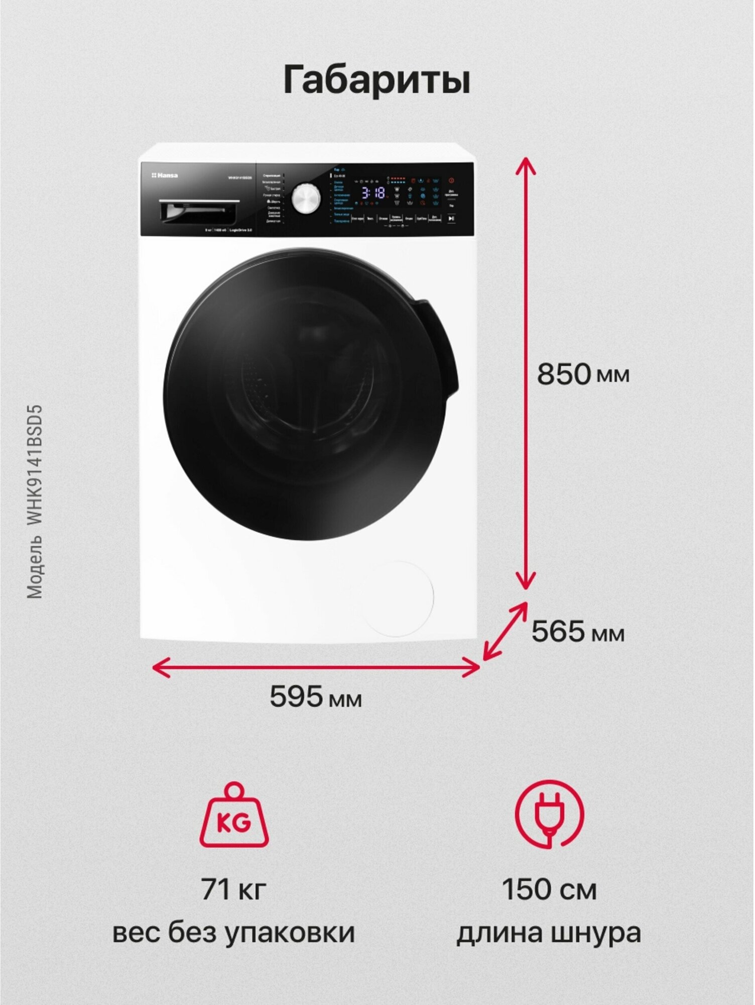 Loading type: front, maximum load of laundry: 9–9.9 kg, installation: freestanding, depth: 56.50 cm, width: 59.50 cm, height: 85 cm, maximum spin speed: from 1200 rpm, energy efficiency class: A+++, in