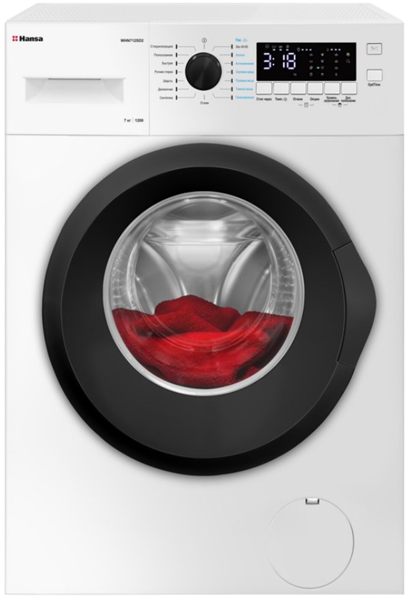 Additional functions: Spin speed selection, washing temperature selection, balance control, foam level control, delayed start