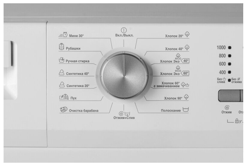 Programs: Soak, spin cancel, pre-wash, wash delicates, wash down items, wash sportswear, wash wool, economy program