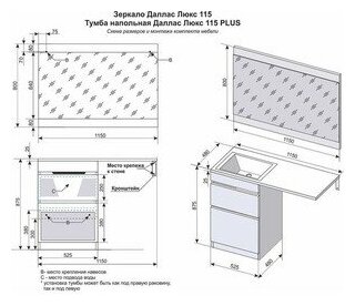 Dimensions of the washing machine with cabinet: height - 87.5 cm, width - 115 cm, depth 48 cm
