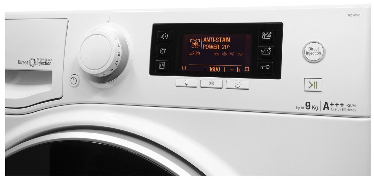 Spin speed selection, washing temperature selection, intelligent wash management, balance control, foam level control, delayed start