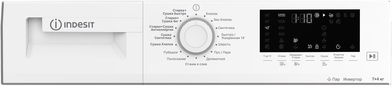 Load type: front, maximum load of laundry: 7-7.9 kg, depth: 44.50 cm, width: 60 cm, height: 84 cm, maximum spin speed: 1100-1200 rpm, drying, energy efficiency class: B, inverter motor,