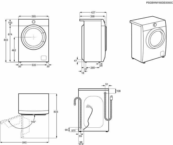 SensiCare function; Fuzzy Logic technology; anti allergy mode; function "Softness +", Time Manager; tray at the bottom; leakage protection device: pressure switch; cord length 1.4 m; universal engine, drum volume 42 l