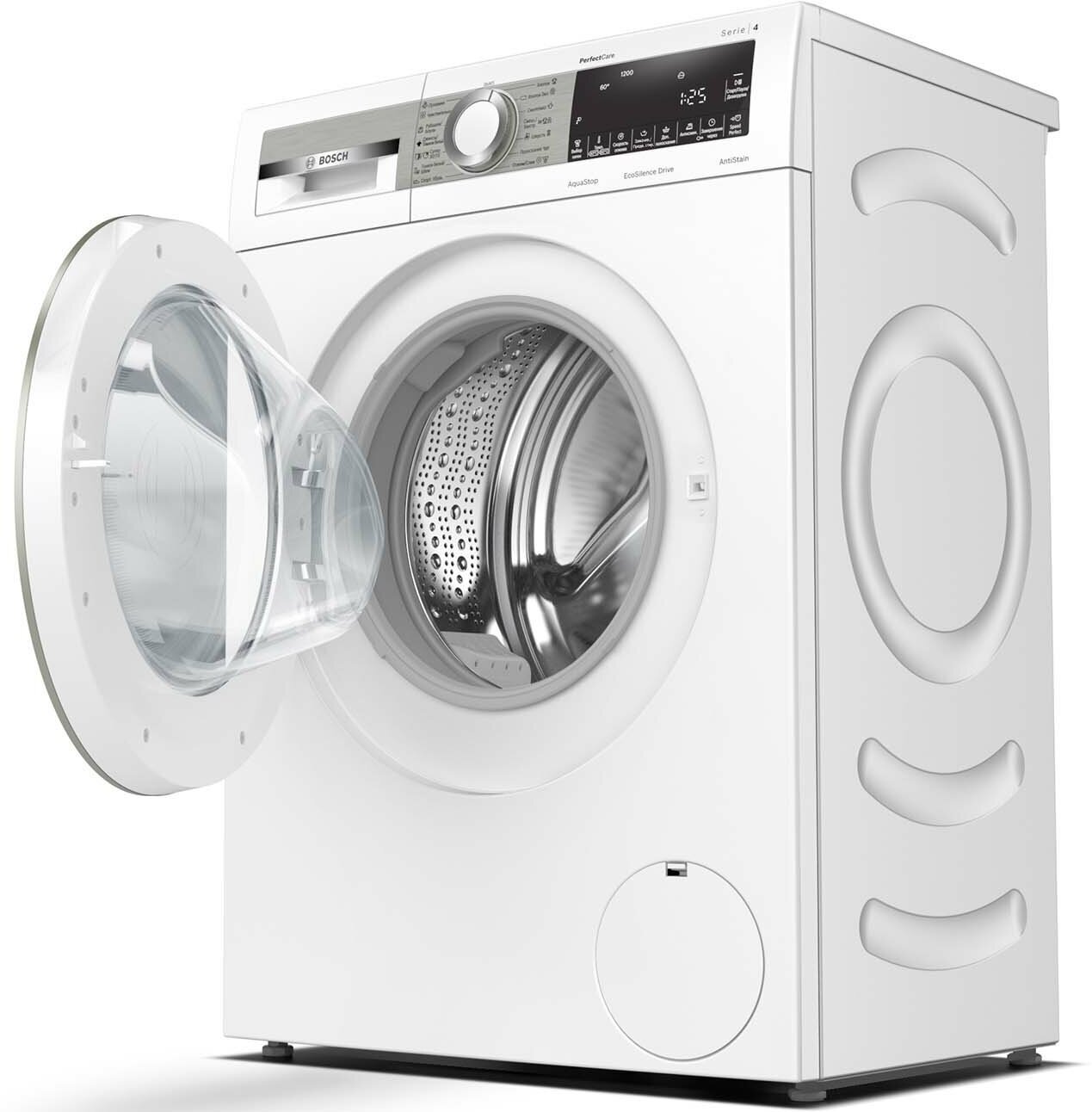 Additional functions: Spin speed selection, washing temperature selection, balance control, foam level control, delayed start, end of wash signal