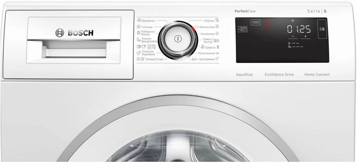 Spin speed selection, washing temperature selection, balance control, foam level control, delayed start, end of wash signal